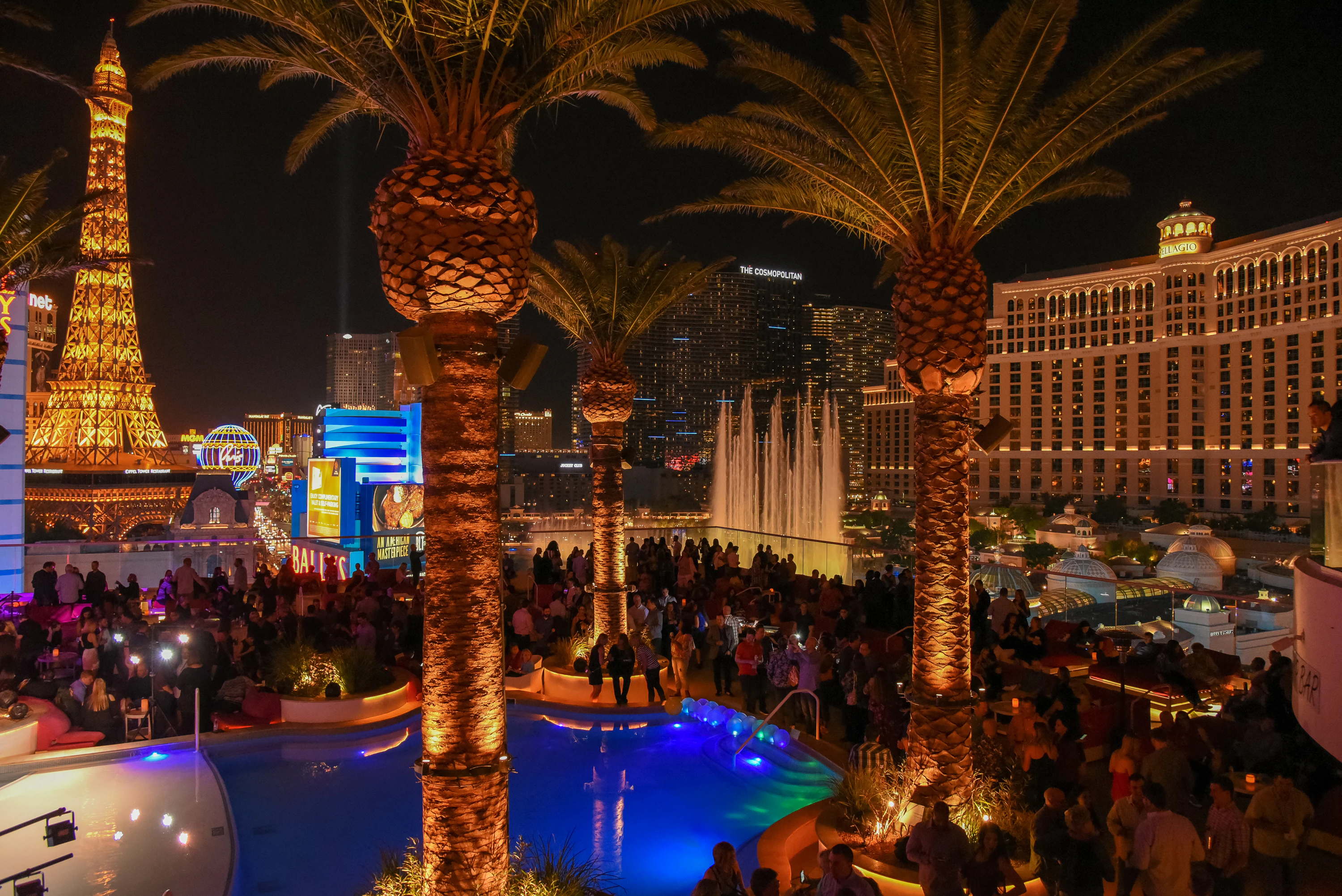 This year’s party will be at the new Soleia nightclub, a poolside rooftop venue overlooking the iconic fountains at the Bellagio. Imagine a vibrant evening set against the backdrop of the dazzling Las Vegas Strip, with the world-famous Bellagio fountains performing their mesmerizing water and light show just below.